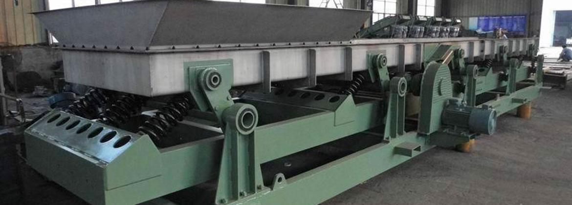 SSL共振式振動輸送機是利用激振器使料槽振動,從而使槽內物料沿一定方向滑行或拋移的連續輸送機械。激振器在電機驅動下產生周期性振動力,通過傳動機構傳遞到輸送槽,輸送槽在激振源的帶動下按激振源相同的振動頻率產生周期性線性振動,同時振動力方向與輸送槽體輸送方向呈一定的拋料角,槽內物料在強迫振動力的作用下沿槽體輸送面連續跳躍向前移動。除激振機構某些零部件外,相對轉動部件很少。物料在振動輸送機中呈現拋射狀態輸送,對輸送槽的磨損較小。